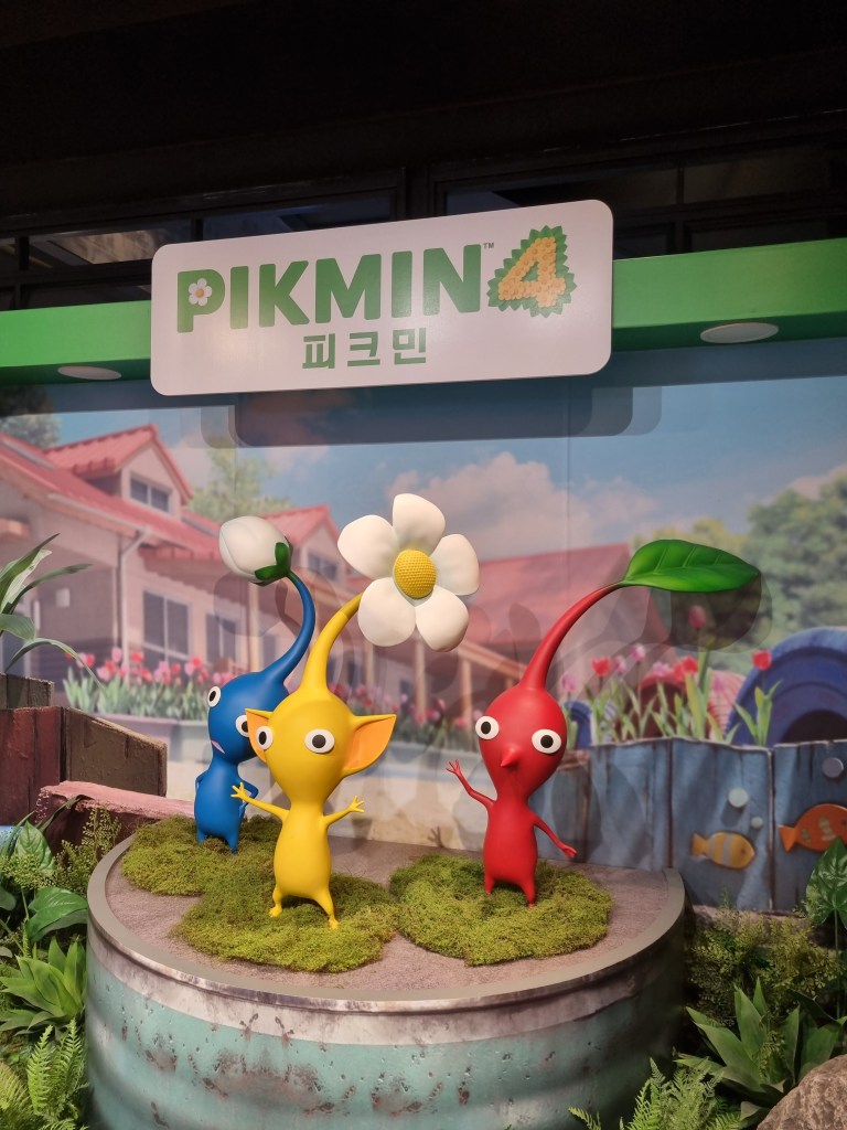 Afterward, I went walking through the mall, and I found a display of Pikmin characters. I’m kind of addicted to the mobile game Pikmin Bloom right now, so I was excited to see this.